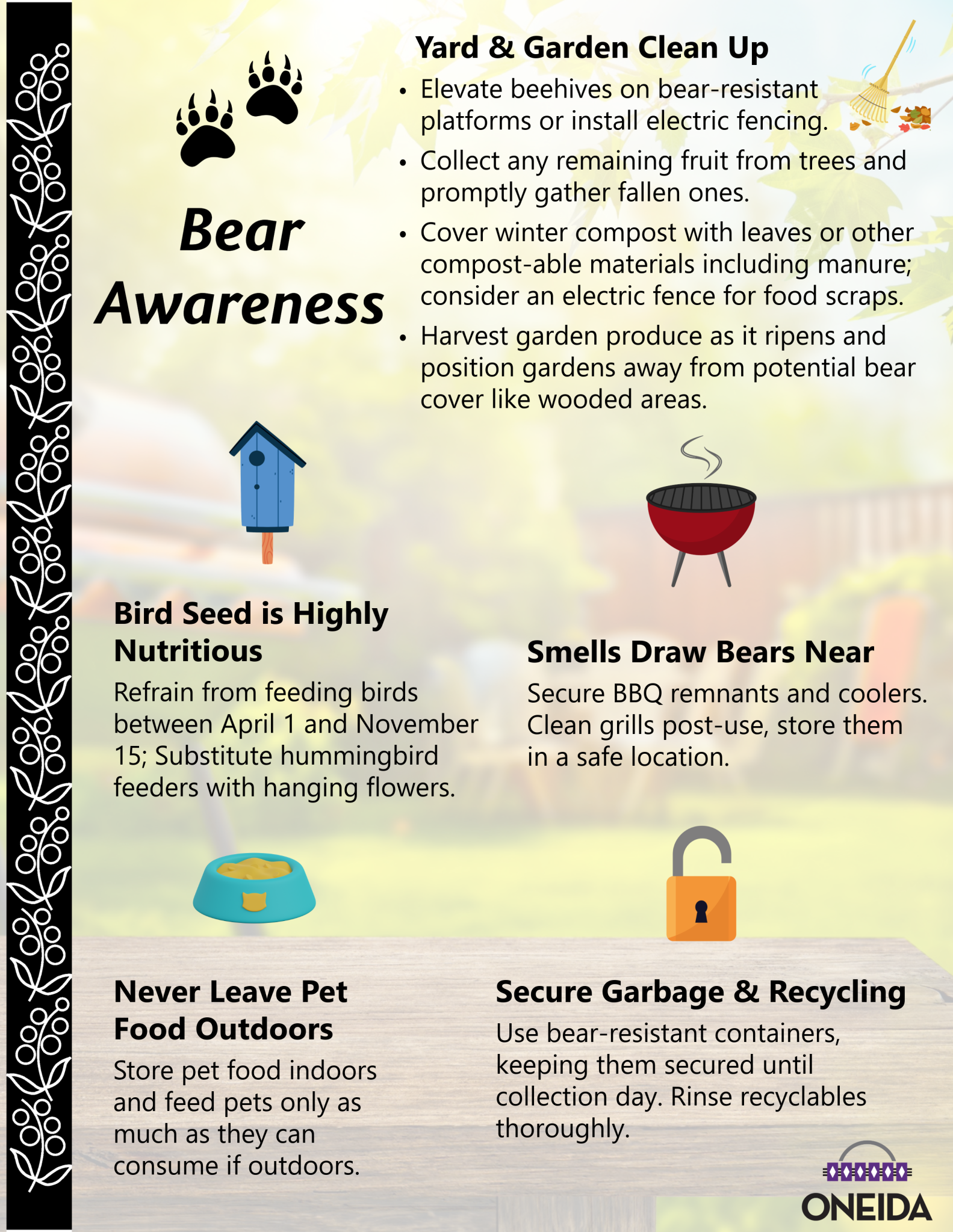 4 Bear sightings in April, 5 ways to stay safe Posted on Apr 23, 2026 General Please contact Conservation Department if you have a bear sighting: 920-869-6500 Share Article